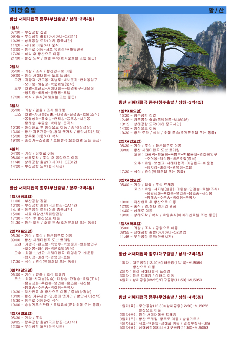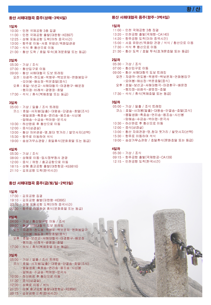 | [10/23일~25일] 황산여행안내(트레킹 정보) - 황산 날씨(일기예보) (0) | 2008.10.23 |