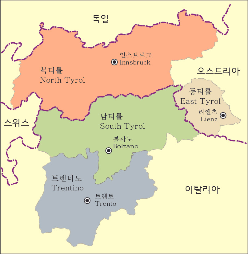 돌로미테는 돌로미티라고도 하며, 티롤알프스에 속한다. 현재 티롤은 오스트리아 서부의 알프스산맥의 산간 지대에 위치한 오스트리아의 연방주이며, 남쪽은 이탈리아, 북쪽은 독일과 국경을 접한다. 원래 티롤은 한가문의 이름이었다. 12세기 중엽 티롤가문의 후손들은 트렌트 주교들의 부동산 중개업자나 백작들이 되어있었다. 13세기가 되면서 티롤가의 백작들은 이탈리아 브레사노네의 주교로부터 광대한 땅을 인수했으며, 1271년에는 사실상 그 지역의 종교 판도를 바꾸어 놓았다.